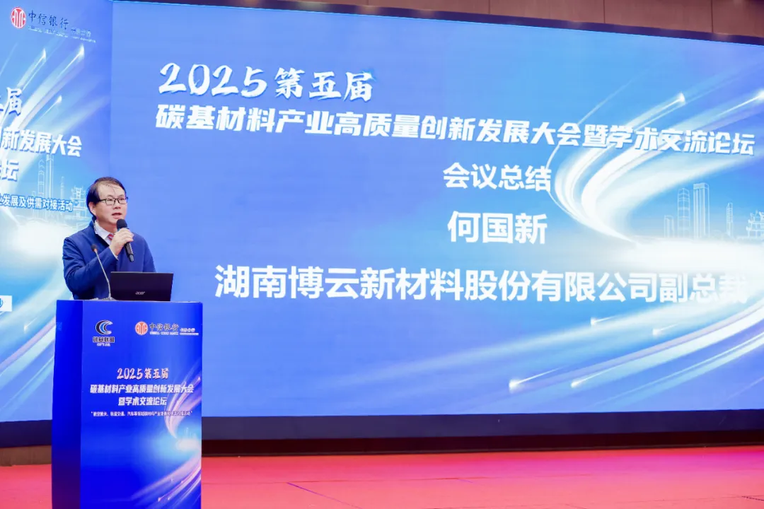 为积极响应全球绿色转型与科技创新的时代号召,推动碳基材料产业的高质量发展,由湖南大学材料科学与工程学院、长沙市碳基材料产业技术创新战略联盟主办的“2025(第五届)碳基材料产业高质量创新发展大会暨学术交流论坛”于2025年10月19日至21日在长沙雅士亚华美达广场酒店举行。中共长沙市委副秘书长,二级巡视员涂文清,市民政局党委委员、副局长何飞,湖南大学材料科学与工程学院院长高力波教授,博云新材总裁冯志荣先生出席并致辞。